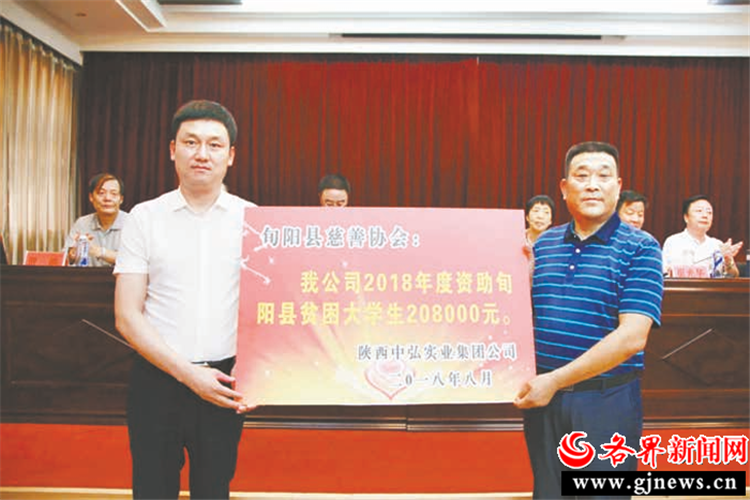 2018年8月,省政協(xié)委員、陜西中弘實(shí)業(yè)集團(tuán)有限公司董事長徐浩向旬陽縣貧困大學(xué)生捐贈(zèng)善款。