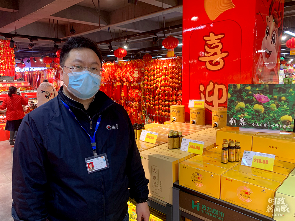為了滿足消費(fèi)者就地過年的需求,超市主要增加了本地的特色產(chǎn)品。店長黃東告訴《時(shí)政新聞眼》,天麻、靈芝、杜仲組成的“貴州三寶”是這些天的熱銷商品。黃東是吉林人,他說自己也積極響應(yīng)號召,今年留在貴州過年。
