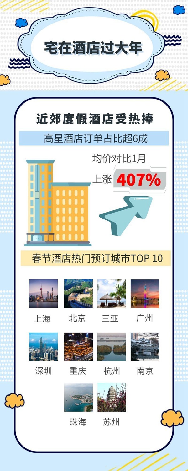 短途游帶動了城市郊區(qū)度假酒店、民宿等預訂火爆。商務部發(fā)布的數(shù)據(jù)顯示,春節(jié)期間北京延慶、密云等郊區(qū)住宿消費同比增長3倍以上,上海崇明、青浦等郊區(qū)住宿消費增長2倍以上。