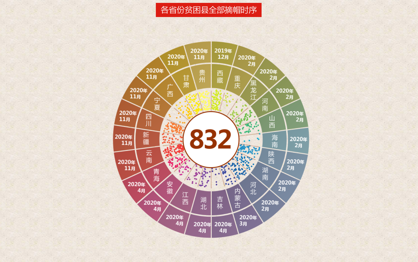 我們用832個(gè)點(diǎn)代表832個(gè)國(guó)家級(jí)貧困縣