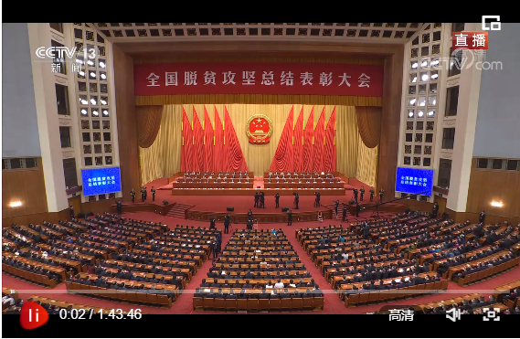 央視網(wǎng)消息:全國(guó)脫貧攻堅(jiān)總結(jié)表彰大會(huì)2月25日上午在北京人民大會(huì)堂隆重舉行。中共中央總書(shū)記、國(guó)家主席、中央軍委主席習(xí)近平向全國(guó)脫貧攻堅(jiān)楷模榮譽(yù)稱(chēng)號(hào)獲得者頒獎(jiǎng)并發(fā)表重要講話(huà)。