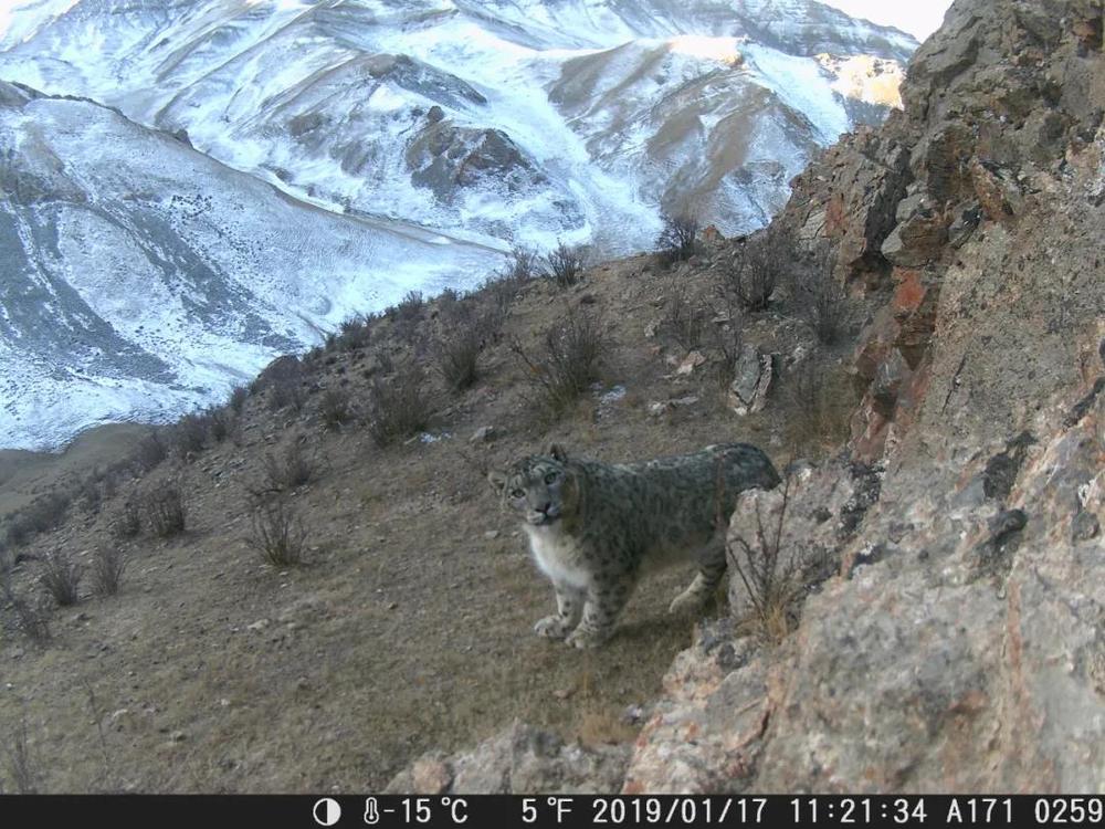 ↑2019年1月17日,在祁連山國(guó)家公園青海片區(qū),紅外相機(jī)拍攝到的雪豹照片。