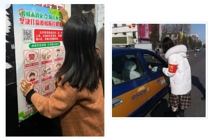 協(xié)助社區(qū)工作人員開展返鄉(xiāng)人員信息登記、查看健康碼、測量體溫,為進出人員分發(fā)口罩、排查登記;深入醫(yī)院等公共場所,耐心宣講防疫知識,引導(dǎo)居民做好自我防護;將防疫小知識制作成手冊,融入文字、圖片等多種元素,發(fā)放給當(dāng)?shù)鼐用瘢瑥V泛宣傳防疫知識……同學(xué)們的身影忙碌于15個省份44個地市。