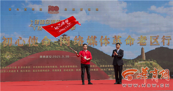 主會場活動結(jié)束后,陜西分會場“在這里讀懂初心使命——網(wǎng)絡(luò)媒體革命老區(qū)行”網(wǎng)絡(luò)主題采訪活動在延安寶塔山游客廣場正式啟動。趙剛在分會場啟動儀式上講話并向采訪團(tuán)授旗。陜西省委網(wǎng)信辦主任鮑永能主持啟動儀式。中央網(wǎng)信辦網(wǎng)絡(luò)傳播局副局長邵波濤,陜西省委網(wǎng)信辦副主任王利參加啟動儀式。延安市委副書記、政法委書記嚴(yán)漢平在啟動儀式上致辭。媒體團(tuán)代表中國新聞網(wǎng)負(fù)責(zé)人吳慶才作表態(tài)發(fā)言。