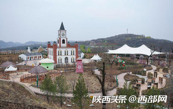 站在南溝村生態(tài)園最高處的觀景臺(tái)俯瞰景區(qū),紅色小樓錯(cuò)落有序、旁邊水庫綠水盈盈、遠(yuǎn)處山峰層層疊疊、成片的蘋果園劃出整齊的曲線,五顏六色的游樂設(shè)施裝點(diǎn)著黃土高原,讓人驚嘆山溝溝里竟然還有這樣養(yǎng)眼的好去處。
