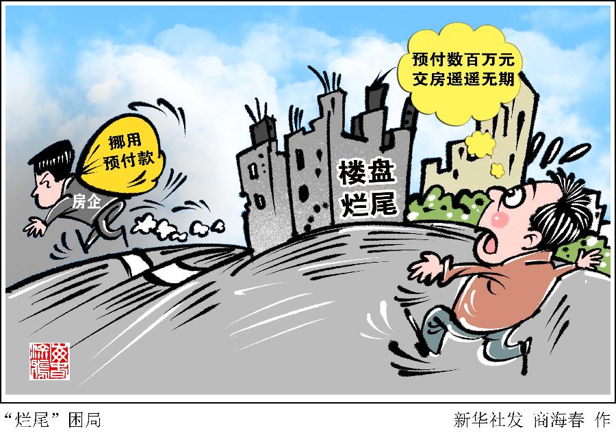 上海浦東御中環(huán)二期項(xiàng)目爛尾并非偶發(fā)事件。近年來(lái),各地嚴(yán)控房地產(chǎn)融資。于是,一些開(kāi)發(fā)商挪用購(gòu)房預(yù)付款“拆東墻補(bǔ)西墻”,高負(fù)債、高杠桿拿地賣(mài)房。當(dāng)“十口鍋五個(gè)蓋”的游戲難以為繼,購(gòu)房者就不得不為開(kāi)發(fā)商的挪用行為“埋單”。樓盤(pán)爛尾、交付遙遙無(wú)期、維權(quán)難等現(xiàn)象在多地頻發(fā)。