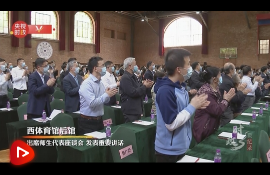 在西體育館后館,習近平總書記出席師生代表座談會,發(fā)表重要講話。他強調堅持中國特色世界一流大學建設目標方向,為服務國家富強、民族復興、人民幸福貢獻力量。