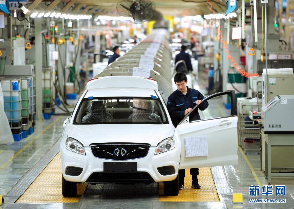 工人在北汽新能源黃驊分公司總裝車間內(nèi)工作(2019年12月21日攝)。新華社記者 牟宇 攝