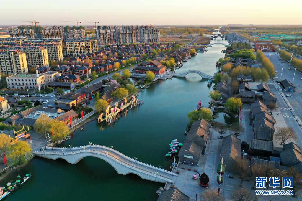 河北省唐山市豐南區(qū)唐津運(yùn)河風(fēng)光(2021年4月13日攝,無人機(jī)照片)。近年來,河北省唐山市豐南區(qū)大力推進(jìn)“全域治水 清水潤城”工程,統(tǒng)籌城鄉(xiāng)水環(huán)境綜合治理,將治水與民生改善、產(chǎn)業(yè)發(fā)展、城市景觀相結(jié)合。 新華社記者 牟宇 攝