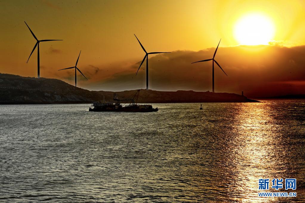 這是在福建南日島海域拍攝的風(fēng)力發(fā)電場(2019年2月22日攝)。新華社記者 張國俊 攝