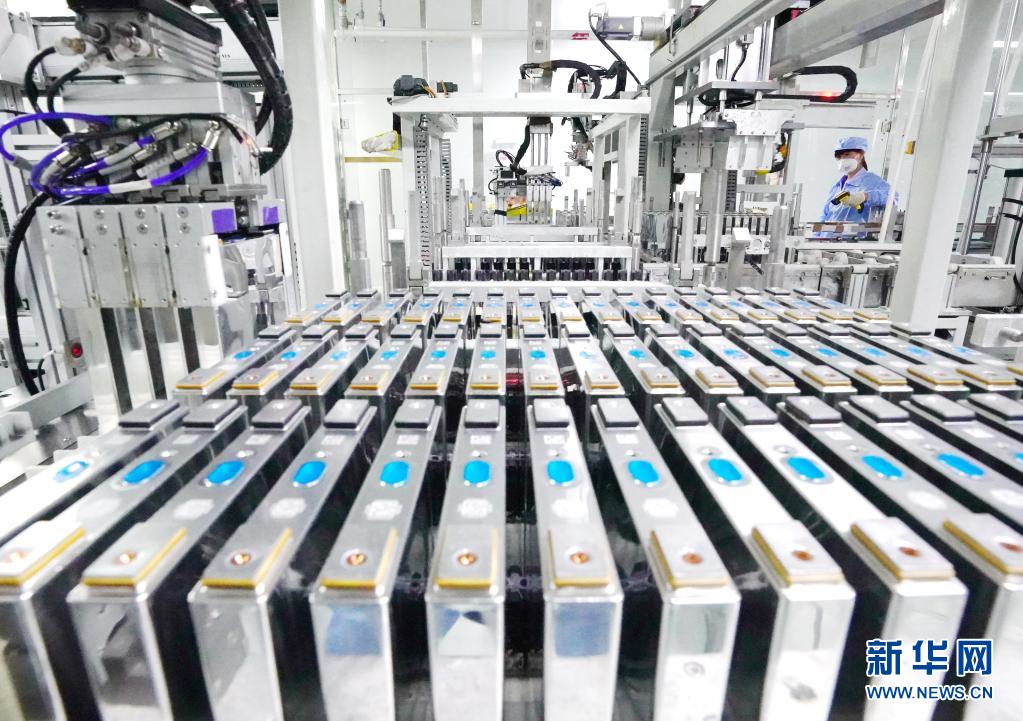 河北省唐山市路北區(qū)一家鋰電池企業(yè)的工人在生產(chǎn)線上工作(2020年11月29日攝)。新華社記者 楊世堯 攝