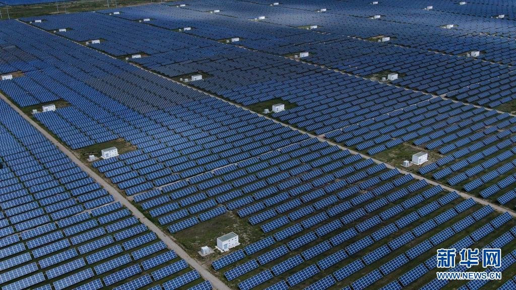 青海省海南藏族自治州共和縣塔拉灘光伏電站(2020年8月17日攝,無人機(jī)照片)。新華社記者 張龍 攝