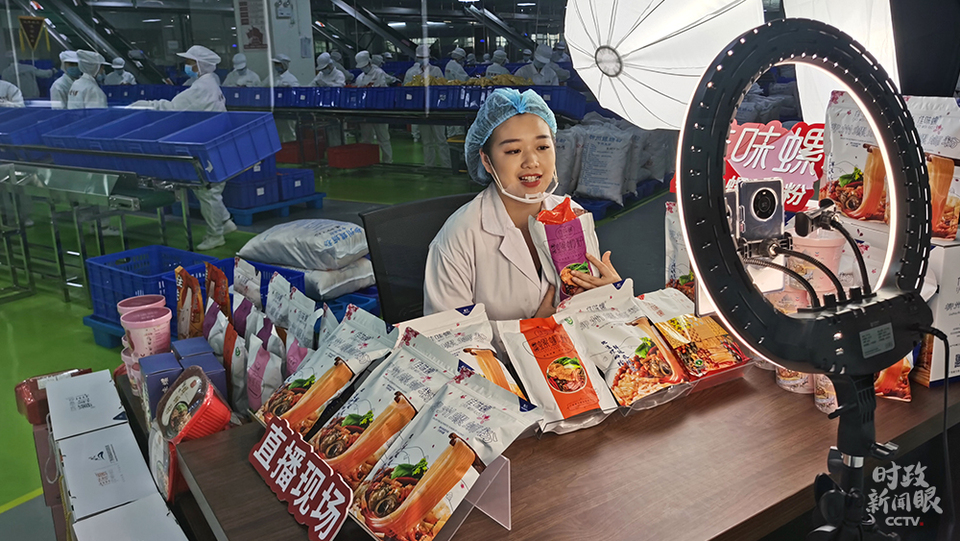 △袋裝螺螄粉直播帶貨現(xiàn)場(總臺央視記者許永松拍攝)
