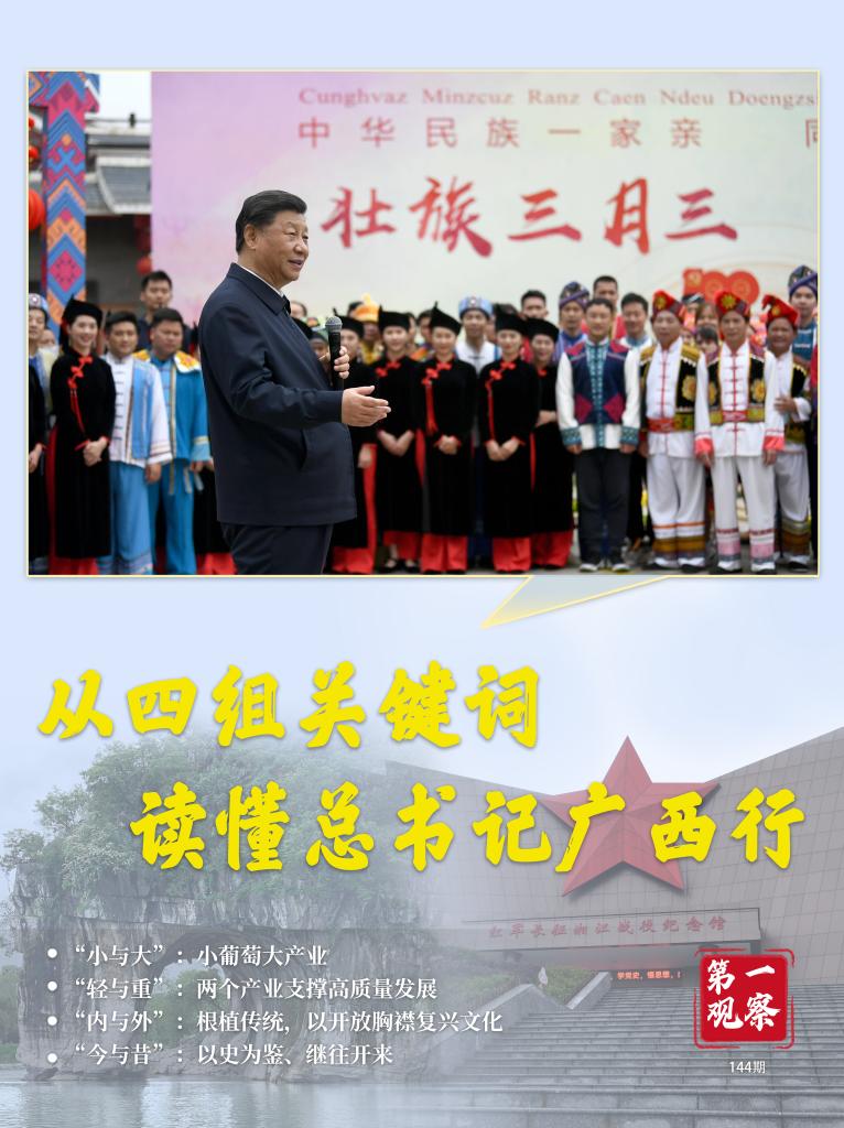 這一次,我們換個視角,通過“小與大”“輕與重”“內(nèi)與外”“今與昔”四組關(guān)鍵詞,讀出總書記廣西之行的深意。