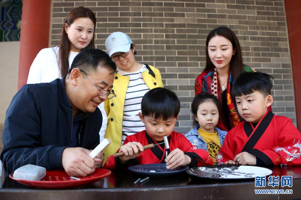 5月1日,在山東省棗莊市孟莊鎮(zhèn)境內(nèi)的龜山風(fēng)景區(qū),民間藝人胡安同(前左一)向小朋友傳授非遺刻瓷技藝。文化和旅游部5月5日晚間公布2021年“五一”假期旅游市場(chǎng)數(shù)據(jù)。統(tǒng)計(jì)顯示,5月1日至5日,全國(guó)國(guó)內(nèi)旅游出游2.3億人次,同比增長(zhǎng)119.7%,按可比口徑恢復(fù)至疫前同期的103.2%。新華社發(fā)(孫中喆 攝)