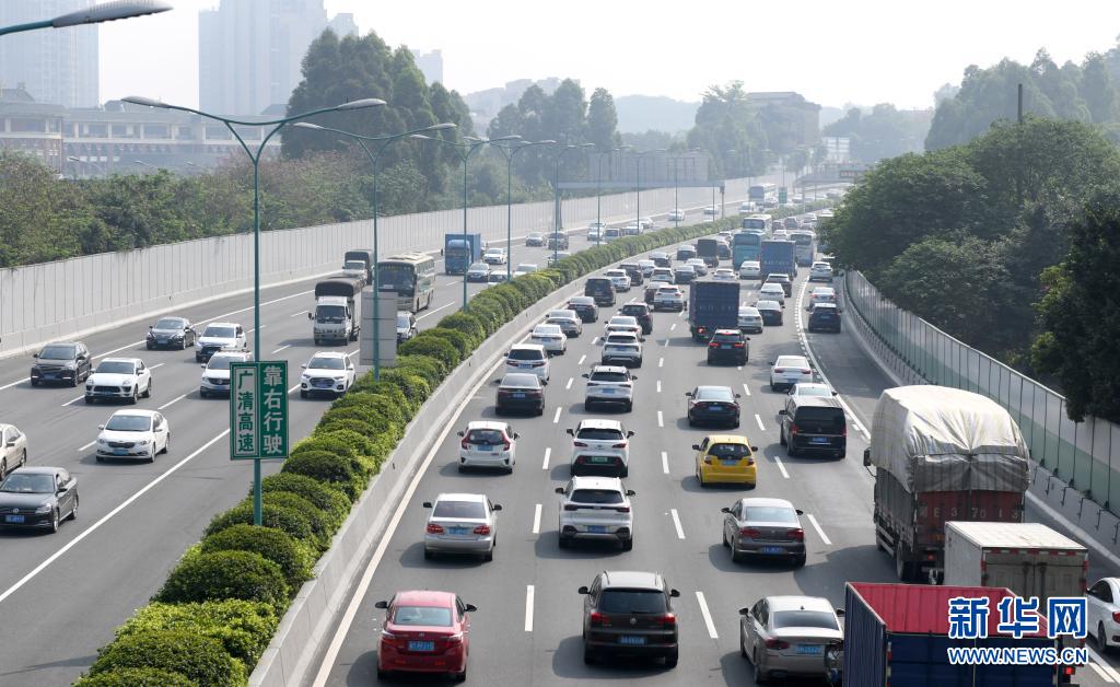 5月1日,廣州環(huán)城高速公路上車(chē)行緩慢。當(dāng)日,廣州周邊高速公路迎來(lái)出行高峰。文化和旅游部5月5日晚間公布2021年“五一”假期旅游市場(chǎng)數(shù)據(jù)。統(tǒng)計(jì)顯示,5月1日至5日,全國(guó)國(guó)內(nèi)旅游出游2.3億人次,同比增長(zhǎng)119.7%,按可比口徑恢復(fù)至疫前同期的103.2%。新華社記者 盧漢欣 攝