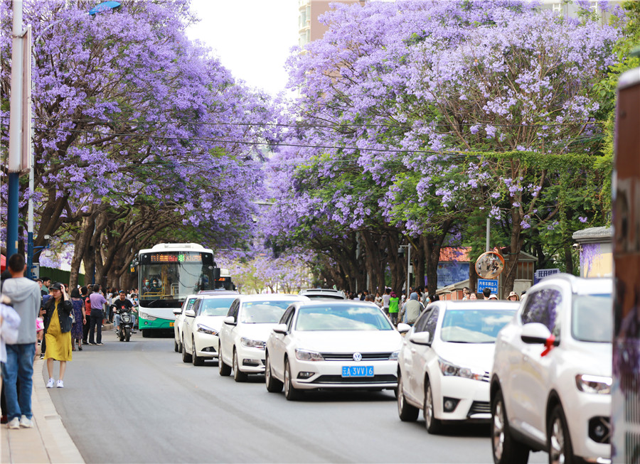 【“飛閱”中國(guó)】用藍(lán)花楹敲開昆明夏天的門