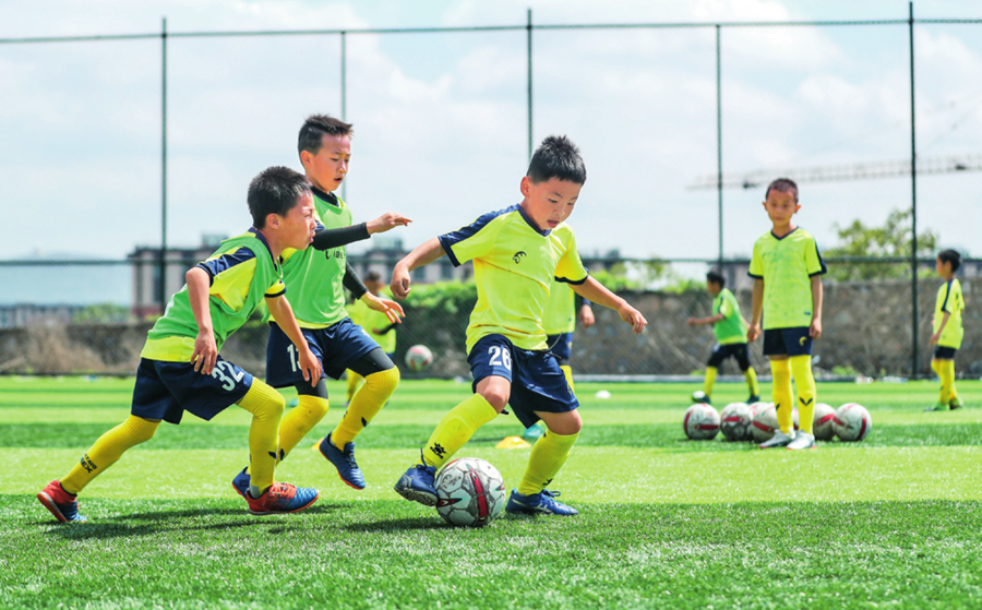 大連龍卷風(fēng)俱樂(lè)部U8年齡組的小球員在進(jìn)行訓(xùn)練(2020年5月19日攝) 潘昱龍攝/本刊