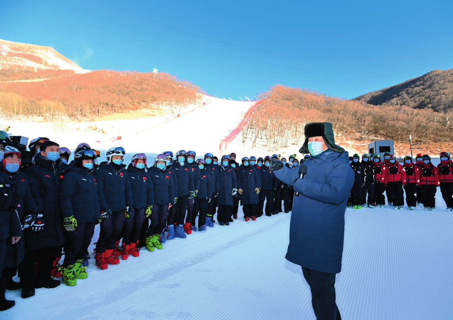 1月18日至20日,中共中央總書(shū)記、國(guó)家主席、中央軍委主席習(xí)近平在北京、河北考察,并主持召開(kāi)北京2022年冬奧會(huì)和冬殘奧會(huì)籌辦工作匯報(bào)會(huì)。這是18日下午,習(xí)近平在位于北京市延慶區(qū)的國(guó)家高山滑雪中心,同賽場(chǎng)保障工作人員、運(yùn)動(dòng)員、教練員等親切交流。 岳月偉攝 / 本刊