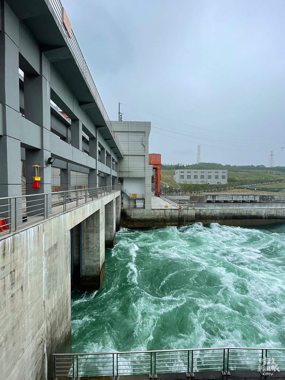 △陶岔渠首水利樞紐工程大壩長(zhǎng)265米,引水閘分3孔、閘總寬31米。(總臺(tái)國廣記者李晉拍攝)