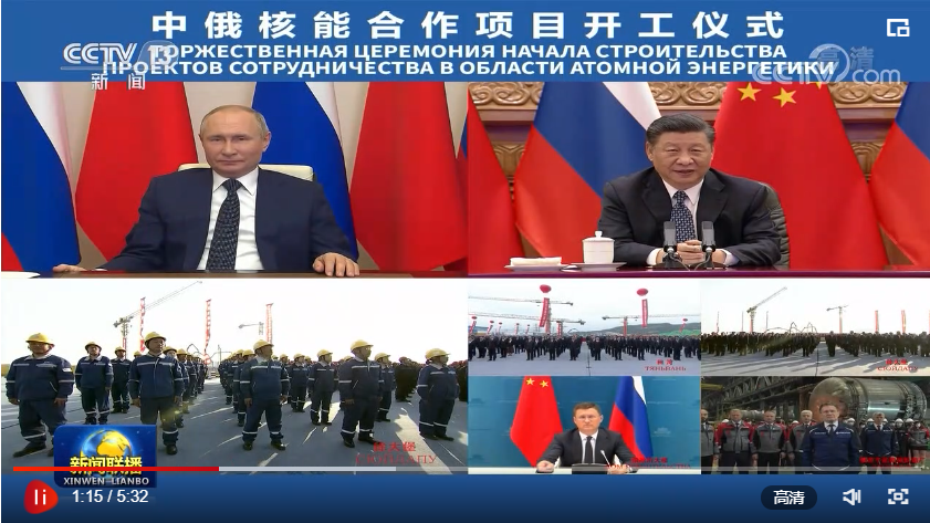 聯(lián)播+“今年是《中俄睦鄰友好合作條約》簽署20周年。我同普京總統(tǒng)商定,將在更高水平、更廣領(lǐng)域、更深層次推進雙邊關(guān)系向前發(fā)展。”5月19日,習近平主席在北京通過視頻連線,同俄羅斯總統(tǒng)普京共同見證兩國核能合作項目——田灣核電站和徐大堡核電站開工儀式。