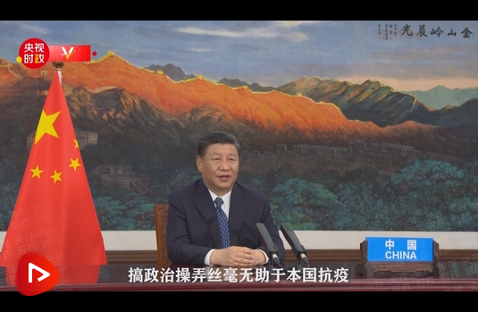 習(xí)近平說:“堅(jiān)持同舟共濟(jì),倡導(dǎo)團(tuán)結(jié)合作。人類榮辱與共、命運(yùn)相連。我們要共克時(shí)艱,堅(jiān)決反對(duì)各種政治化、標(biāo)簽化、污名化的企圖。搞政治操弄絲毫無助于本國抗疫,只會(huì)擾亂國際抗疫合作,給世界各國人民帶來更大傷害。”