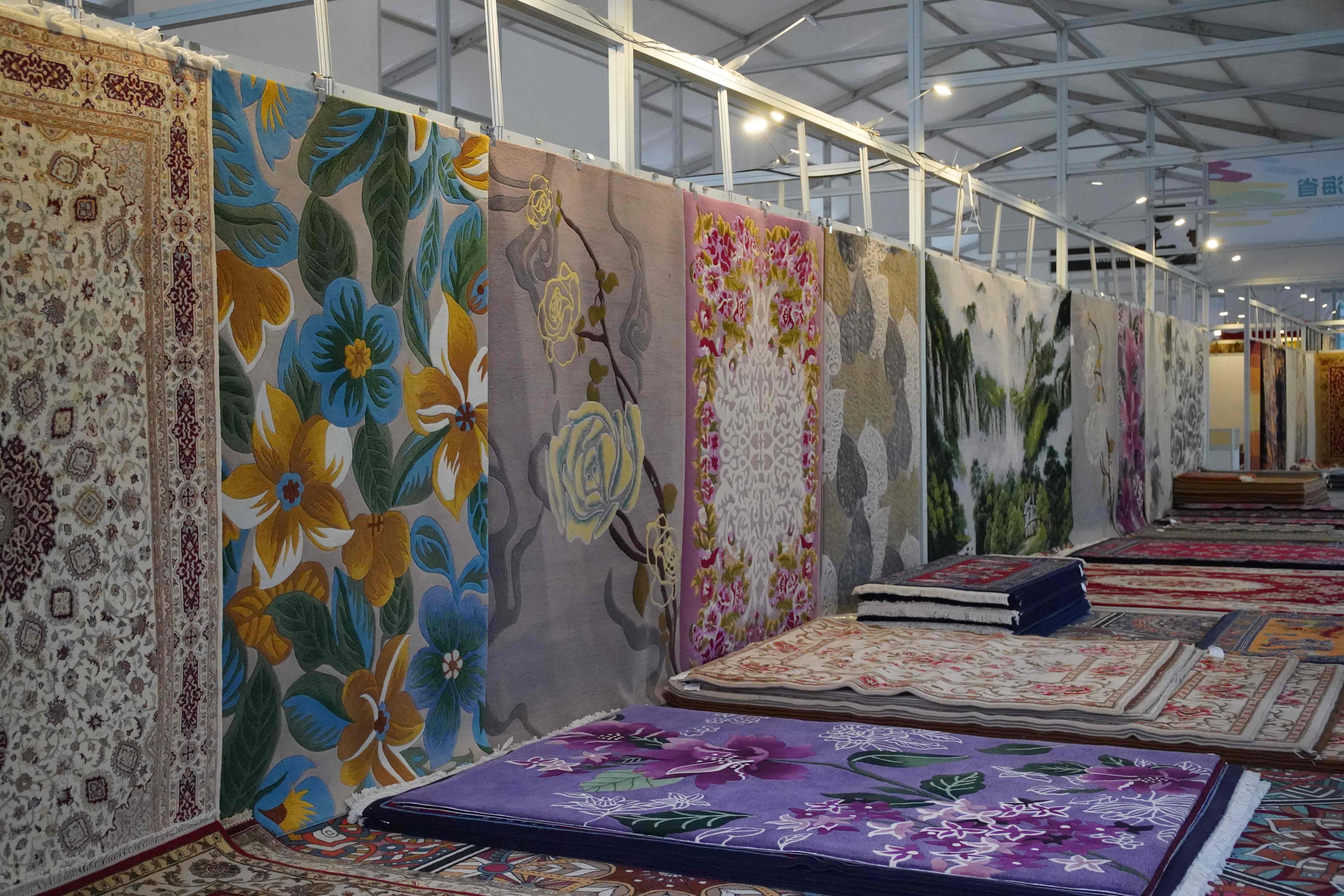 △第18屆中國(guó)(青海)藏毯國(guó)際展覽會(huì)上展出的藏毯。(總臺(tái)央廣記者潘毅拍攝)