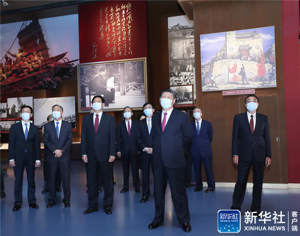 6月18日,黨和國家領導人習近平、李克強、栗戰(zhàn)書、汪洋、王滬寧、趙樂際、韓正、王岐山等在中國共產(chǎn)黨歷史展覽館參觀“‘不忘初心、牢記使命’中國共產(chǎn)黨歷史展覽”。新華社記者 鞠鵬 攝
