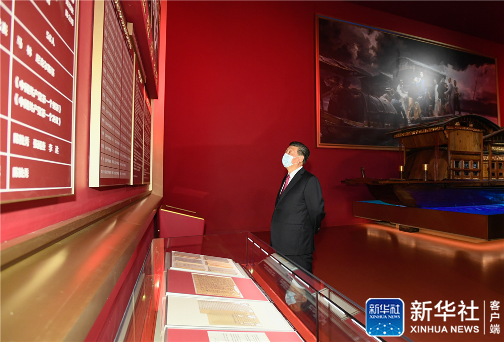 6月18日,黨和國家領導人習近平、李克強、栗戰(zhàn)書、汪洋、王滬寧、趙樂際、韓正、王岐山等在中國共產(chǎn)黨歷史展覽館參觀“‘不忘初心、牢記使命’中國共產(chǎn)黨歷史展覽”。這是習近平在參觀展覽。新華社記者 李學仁 攝