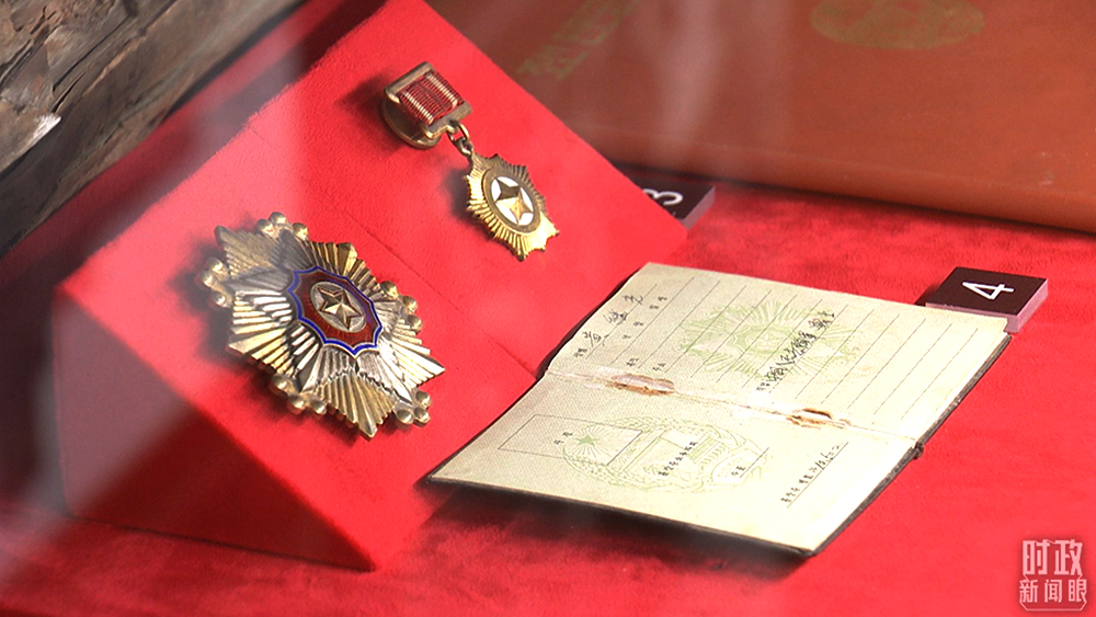 △黃繼光獲授的朝鮮民主主義人民共和國一級國旗勛章、金星獎?wù)隆#偱_央視記者李曉周拍攝)