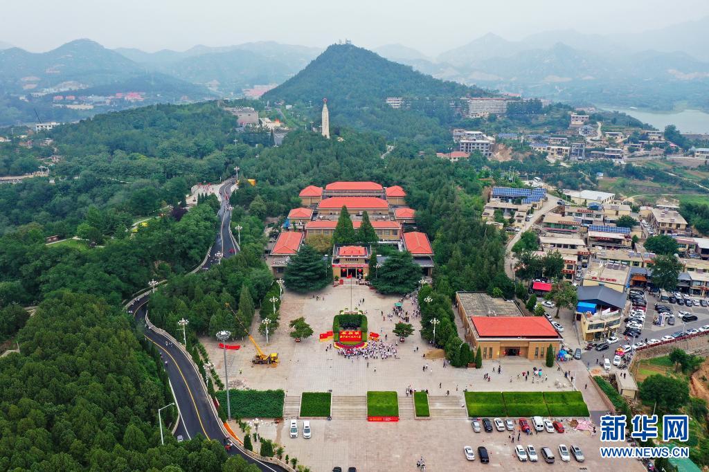 河北省平山縣西柏坡紀(jì)念館外景(6月13日攝,無人機照片)。新華社記者 牟宇 攝