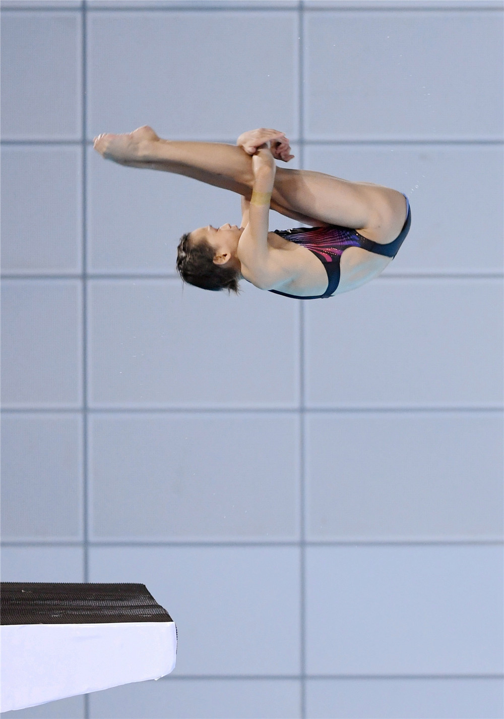 2021年8月5日,全紅嬋在比賽中。當(dāng)日,在東京奧運(yùn)會(huì)跳水項(xiàng)目女子10米跳臺(tái)決賽中,中國選手全紅嬋奪得冠軍。新華社記者 丁旭 攝