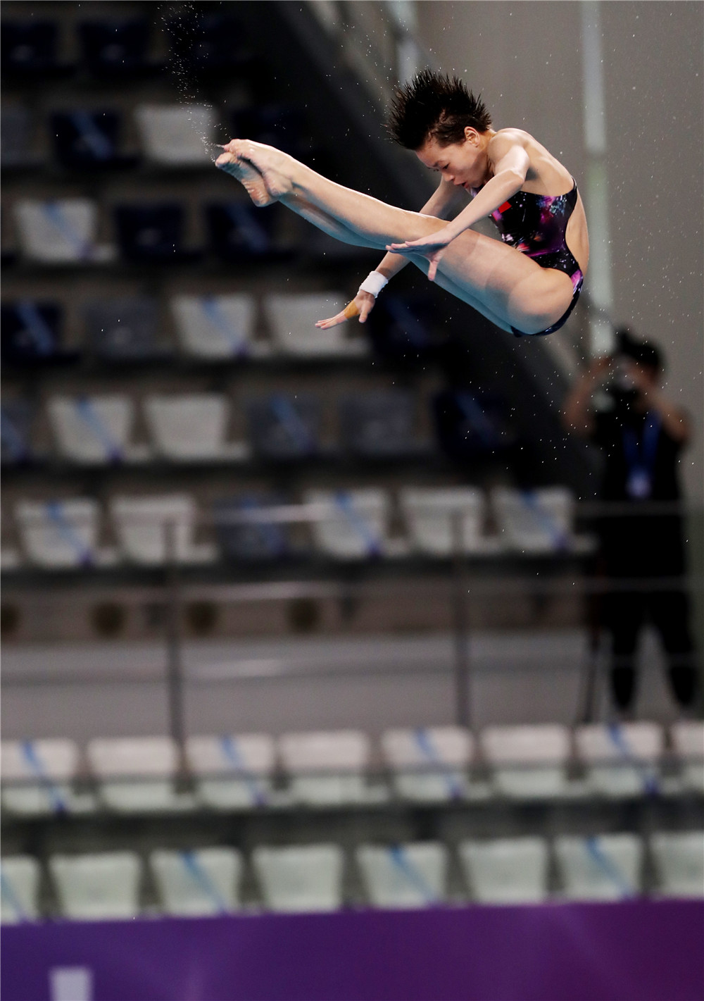 全紅嬋是同伴中第一個(gè)登上3米板,接著是5米跳臺(tái)、7米跳臺(tái)……兩年后,她又是第一個(gè)站在10米跳臺(tái)上,毫不猶豫地跳下去。