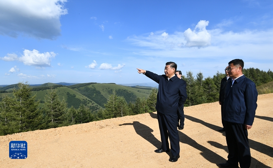 8月23日至24日,中共中央總書(shū)記、國(guó)家主席、中央軍委主席習(xí)近平在河北省承德市考察。這是23日下午,習(xí)近平在塞罕壩機(jī)械林場(chǎng)月亮山考察。新華社記者 謝環(huán)馳 攝