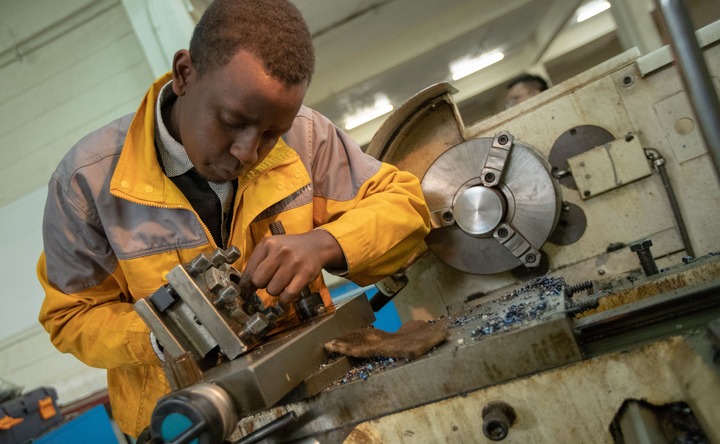 這是2018年8月17日在肯尼亞內(nèi)羅畢,一名學(xué)生維護(hù)機(jī)床。近年來(lái),為了幫助非洲國(guó)家培養(yǎng)職業(yè)技術(shù)人才,助力非洲工業(yè)化進(jìn)程,中航國(guó)際分別與肯尼亞、烏干達(dá)、贊比亞、加納、加蓬等國(guó)教育部合作開(kāi)展職業(yè)教育項(xiàng)目。新華社記者 張宇 攝