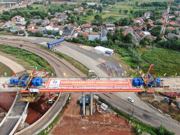 這是2020年5月10日拍攝的印度尼西亞雅萬(wàn)高鐵首個(gè)多跨連續(xù)梁合龍現(xiàn)場(chǎng)。雅萬(wàn)高鐵項(xiàng)目是中國(guó)高鐵全系統(tǒng)、全要素、全生產(chǎn)鏈走出國(guó)門(mén)的“第一單”,也是“一帶一路”倡議的標(biāo)志性工程和印尼國(guó)家戰(zhàn)略項(xiàng)目。 新華社記者 杜宇 攝