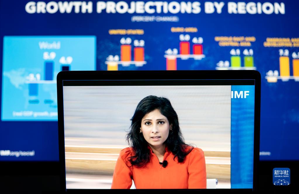 10月12日,國際貨幣基金組織(IMF)首席經(jīng)濟學(xué)家吉塔·戈皮納特在美國華盛頓出席線上視頻新聞發(fā)布會。新華社記者 劉杰 攝