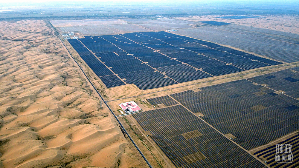 △內(nèi)蒙古鄂爾多斯,達拉特旗光伏發(fā)電領(lǐng)跑獎勵基地,是全球最大的沙漠集中式光伏電站。(圖/視覺中國)