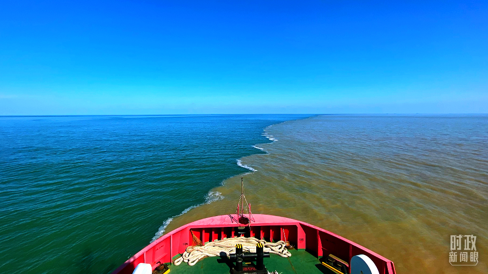 △用于海洋救援的拖輪駛?cè)?ldquo;河海交匯”之處。(總臺(tái)央視記者張宇拍攝)