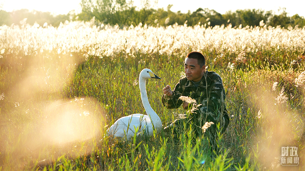 △李建是黃河三角洲國(guó)家級(jí)自然保護(hù)區(qū)的鳥(niǎo)類馴養(yǎng)師。(總臺(tái)央視記者程鋮拍攝)