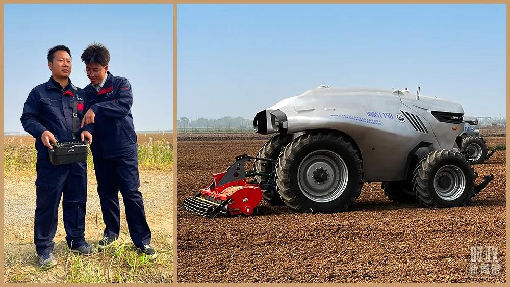△農(nóng)高區(qū)的科研人員遙控操作智能農(nóng)機(jī)。(總臺央視記者趙化拍攝)