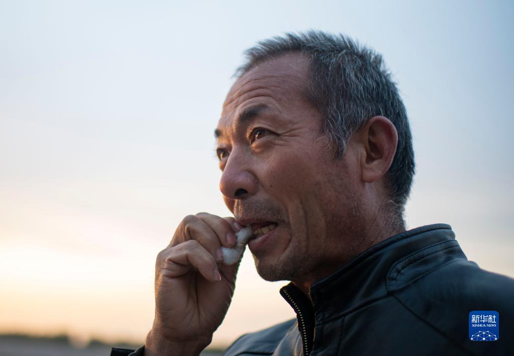 雨過天晴,因擔(dān)心棉花過濕而影響采收進(jìn)度,陸高林急忙來到棉田摘了一朵棉花,放進(jìn)嘴里咬破棉籽,看棉花被雨水淋濕的程度(10月23日攝)。新華社記者 胡虎虎 攝