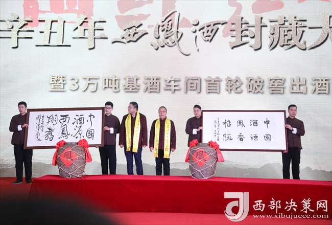 與會(huì)領(lǐng)導(dǎo)、優(yōu)秀職工代表共同上臺(tái)封藏西鳳新酒,傳承西鳳酒3000年匠藝,慶祝西鳳擴(kuò)能的輝煌時(shí)刻。