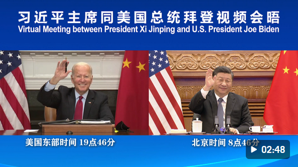 國家主席習(xí)近平16日上午在北京同美國總統(tǒng)拜登舉行視頻會晤。