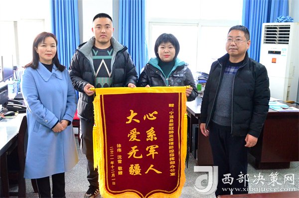 西部決策網(wǎng)訊“我能夠與家人團(tuán)圓,能夠照顧我的妻子和母親,能夠見(jiàn)到剛出生不久的孩子,給你們添了不少麻煩,真的太感謝你們了!”12月1日下午,在四川綿陽(yáng)某部隊(duì)服役回家探親、家住寧強(qiáng)縣漢源街道辦二道河社區(qū)的徐偉與他的妻子及姐姐一同來(lái)到縣疫情防控辦,將一面印有“心系軍人 大愛(ài)無(wú)疆”的錦旗送到工作人員的手中時(shí)激動(dòng)地說(shuō),“你們?cè)诎倜χ心転槲覀冎?,你們是全心全意為人民服?wù)的好干部……我們制作了一面錦旗略表一下謝意,請(qǐng)收下!”