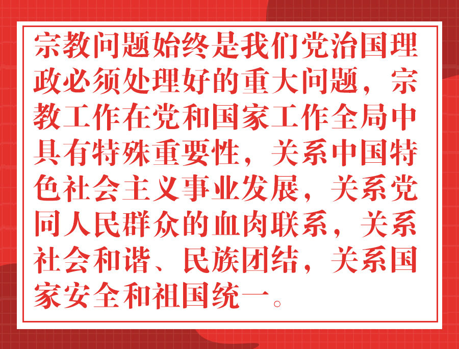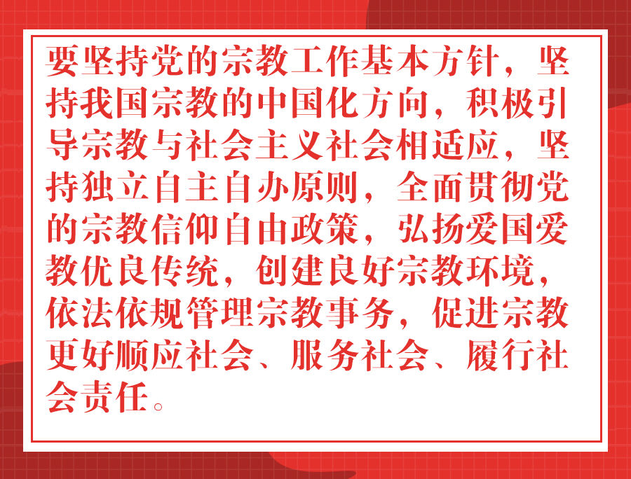 12月3日至4日,全國宗教工作會議在北京召開。中共中央總書記、國家主席、中央軍委主席習近平出席會議并發(fā)表重要講話。李克強、栗戰(zhàn)書、汪洋、王滬寧、趙樂際、韓正出席會議。