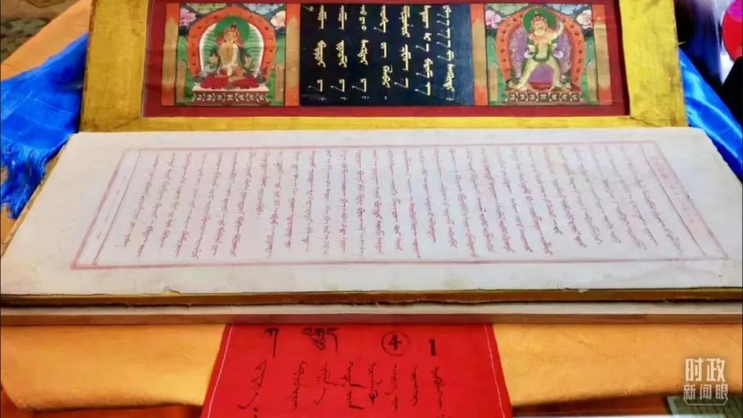 △《甘珠爾經(jīng)》是研究佛學、哲學、語言、民族文化交流等方面的重要文獻,被稱為蒙古文的百科全書。目前內(nèi)蒙古大學圖書館珍藏的版本,是世界上最完整的版本。(總臺央視記者張曉鵬拍攝)