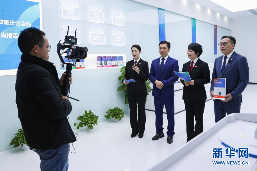 重慶知識產權法庭副庭長譚穎在直播中向網(wǎng)友普及知識產權保護的相關法律知識。新華網(wǎng)發(fā)(吳川嬌 攝)