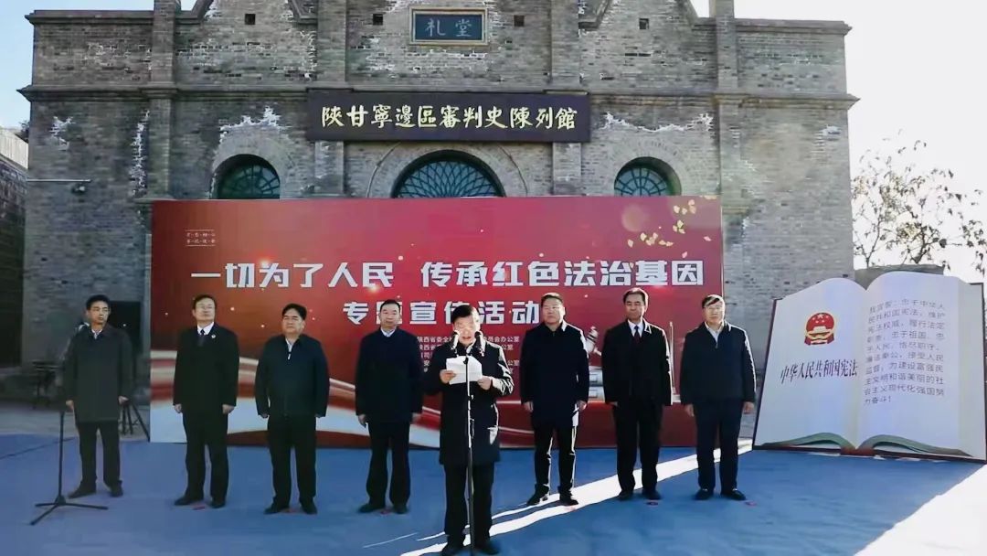 11月30日下午,由司法部普法與依法治理局指導(dǎo),中共陜西省委依法治省辦、省委普法辦、省司法廳主辦,延安市中級(jí)人民法院、延安市司法局承辦的“一切為了人民—傳承紅色法治基因”專題宣傳活動(dòng)在陜甘寧邊區(qū)高等法院舊址舉辦。