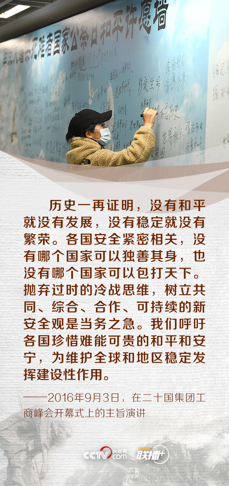 昭昭前事,惕惕后人;永矢弗諼,祈愿和平。在第八個南京大屠殺死難者國家公祭日來臨之際,央視網(wǎng)《聯(lián)播+》特梳理黨的十八大以來總書記關(guān)于銘記歷史、珍愛和平的重要論述,與您一同緬懷逝者,堅定維護和平的決心。